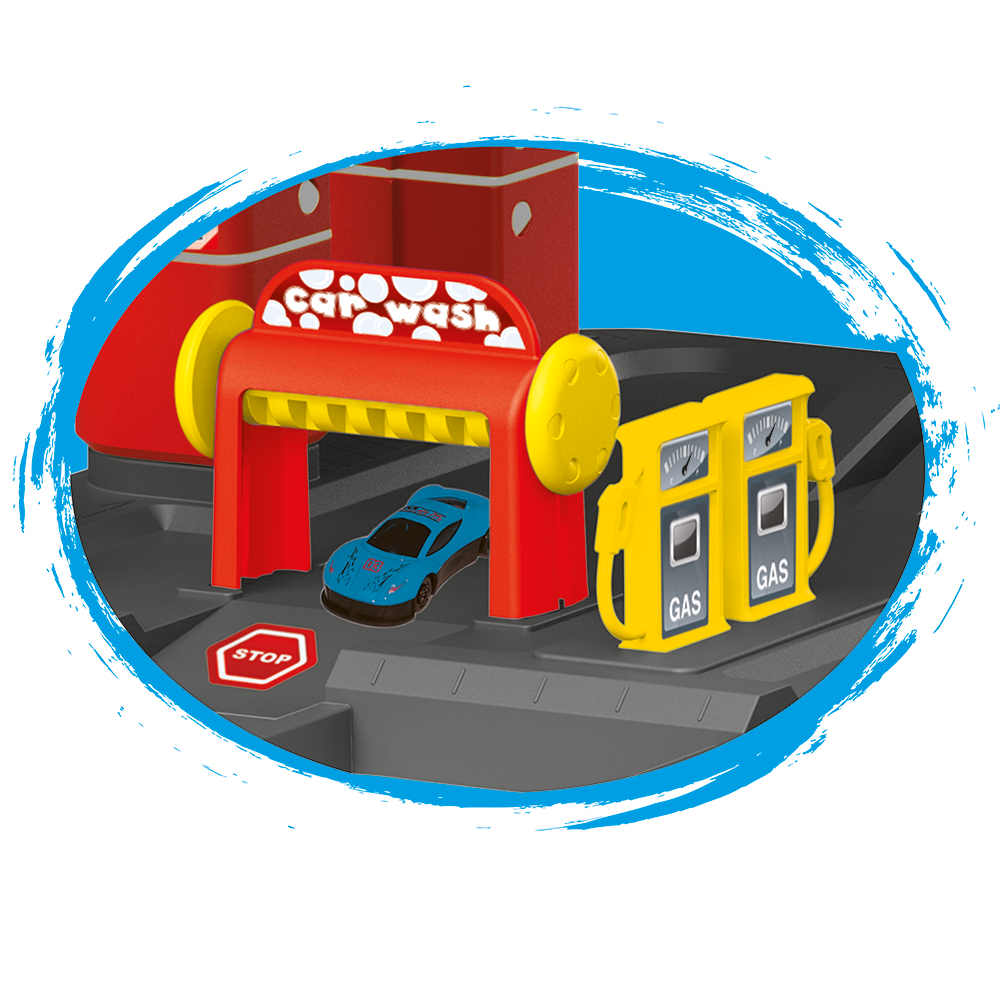 Πρόκειται για έναν τριών επιπέδων γκαράζ, σχεδιασμένο για να προσφέρει ατελείωτες ώρες διασκέδασης με αυτοκινητάκια.
